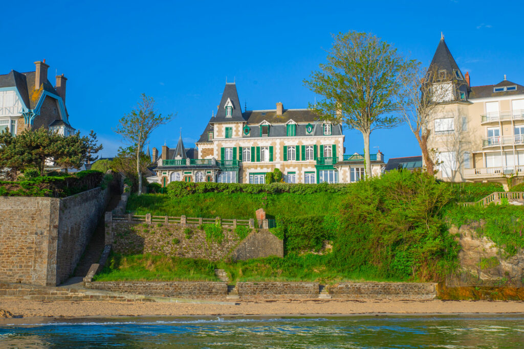 Organisée en 2 villas mitoyennes et indépendantes située au cœur d’une élégante station balnéaire du début du siècle dernier surplombant luxueusement la grande plage de sable fin d’une des plus jolies baies de la Côte d’Émeraude.